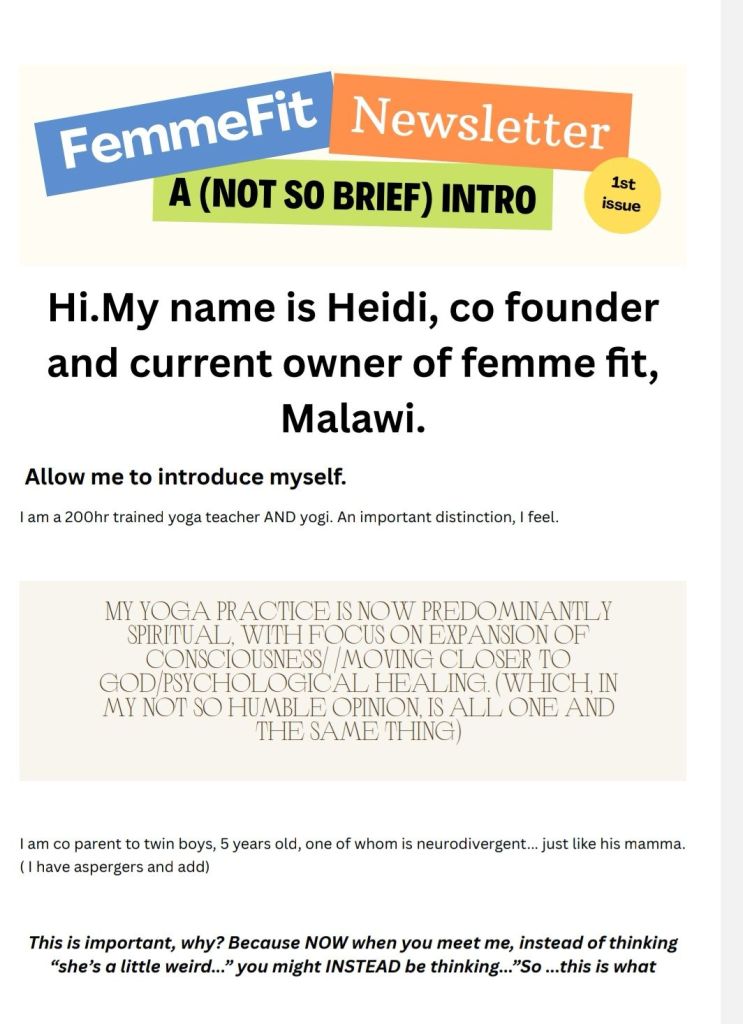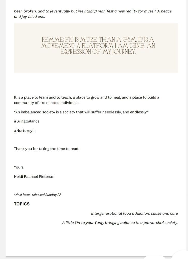 I will be posting a weekly gym news letter, which I’ll be sharing from this platform for now.